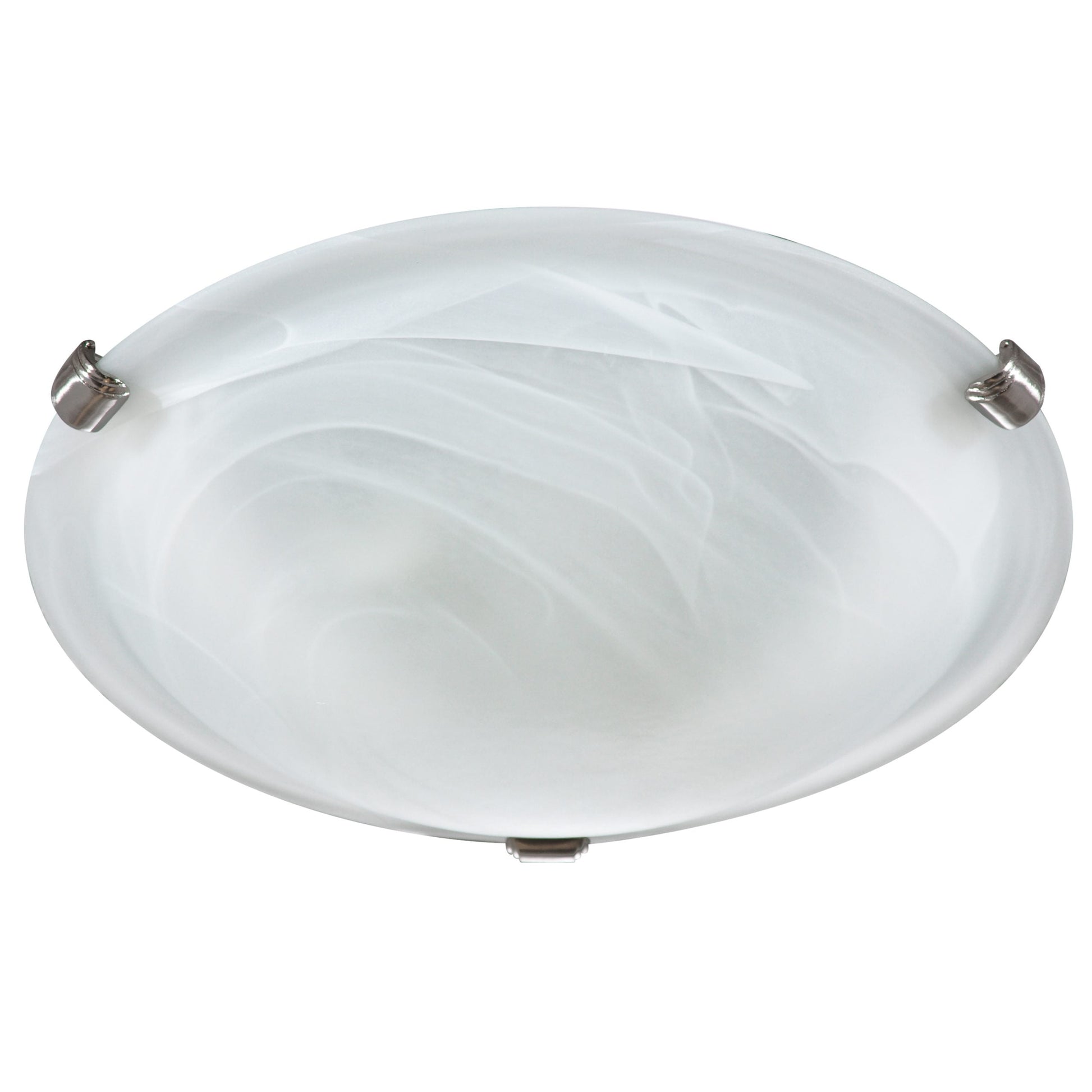 12″W Ceiling light with brushed nickel accents and frosted alabaster glass shade