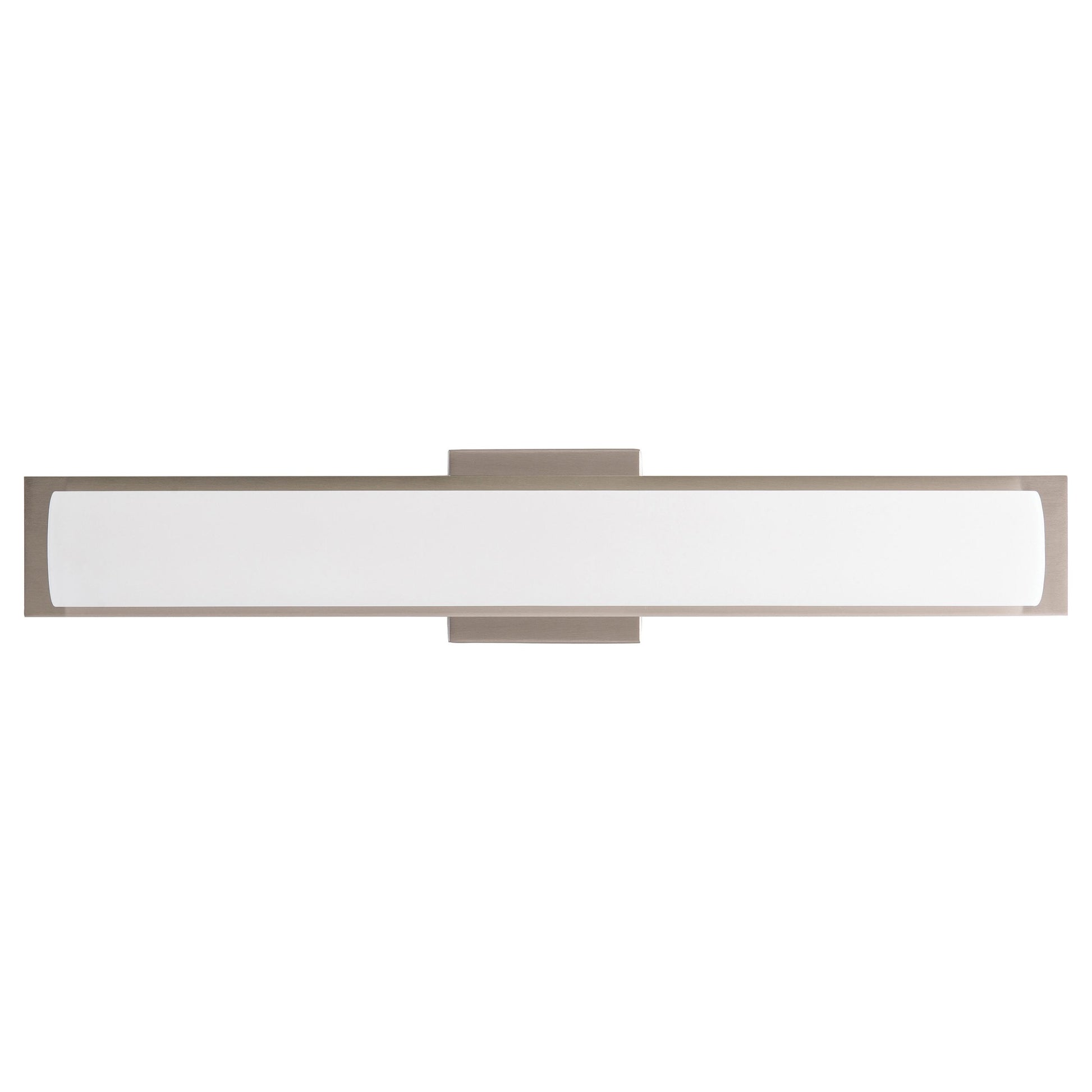 24″W Vanity light bar with brushed nickel finish, frosted glass shade and integrated LED