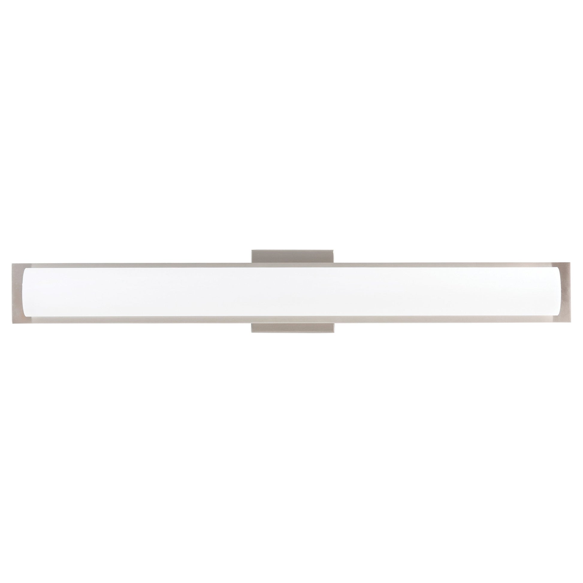 30″W Vanity light bar with brushed nickel finish, frosted glass shade and integrated LED