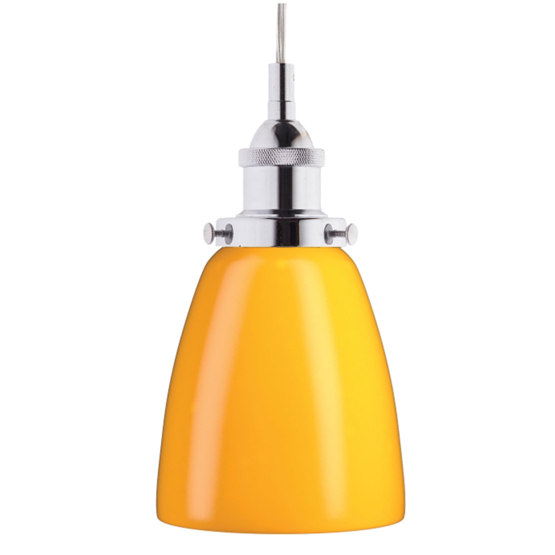 5.5″ Diameter pendant light with chrome finish, yellow glass shade and adjustable cord