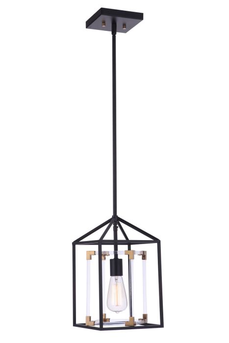 Aaron 1 Light Acrylic Pendant in Flat Black/Satin Brass