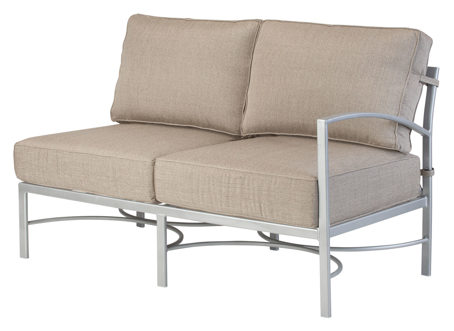 The Augusta Deep Seating Loveseat Sectional Unit. Durability combined with the comfort of gentle-sloping arm rests and deep seating compliments any outdoor space. Select among a number of unique fabrics and finishes.
