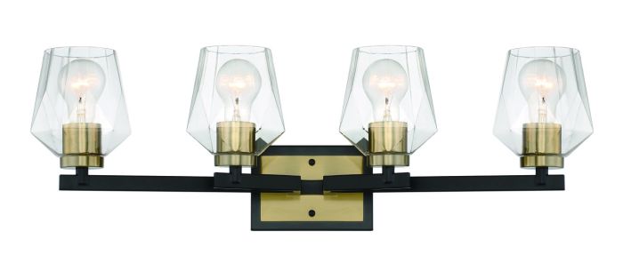 Avante Grand 4 Light Vanity in Flat Black/Satin Brass