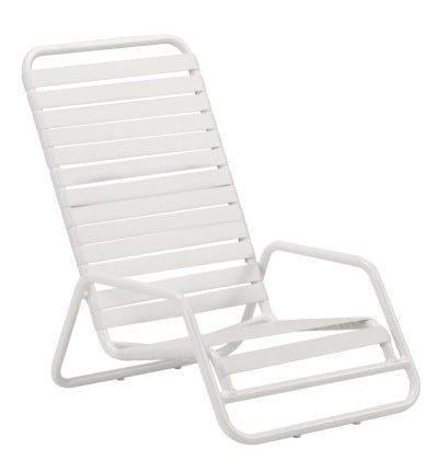 The functionality and style of the Bay Hill Strap Beach Chair provide for a relaxing beach-going experience. Available in a number of contemporary colors designers love the versatility of the stackable aluminum beach chair. Also available in sling seating.