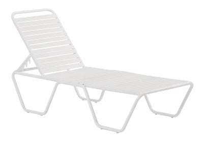 Guests are whisked away as they relax in the Bay Hill Strap Chaise. Admired for its versatility and comfort, the stackable aluminum chaise compliments the beauty of any designed outdoor space. Also available in cross weave and sling seating.