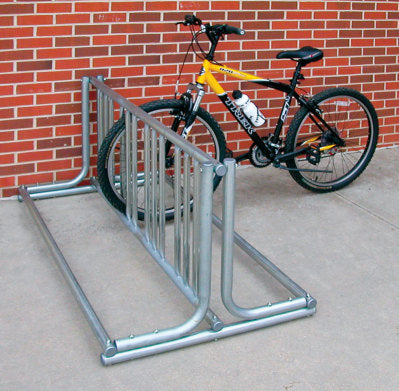 Give active hotel and resort guests a sturdy and secure way to store their bicycles with this commercial-quality bike rack. The all galvanized structure is made of 1 5/8 inch 0.D. pipe frame with 1 inch O.D. tube stalls. Includes space for 8 bicycles.