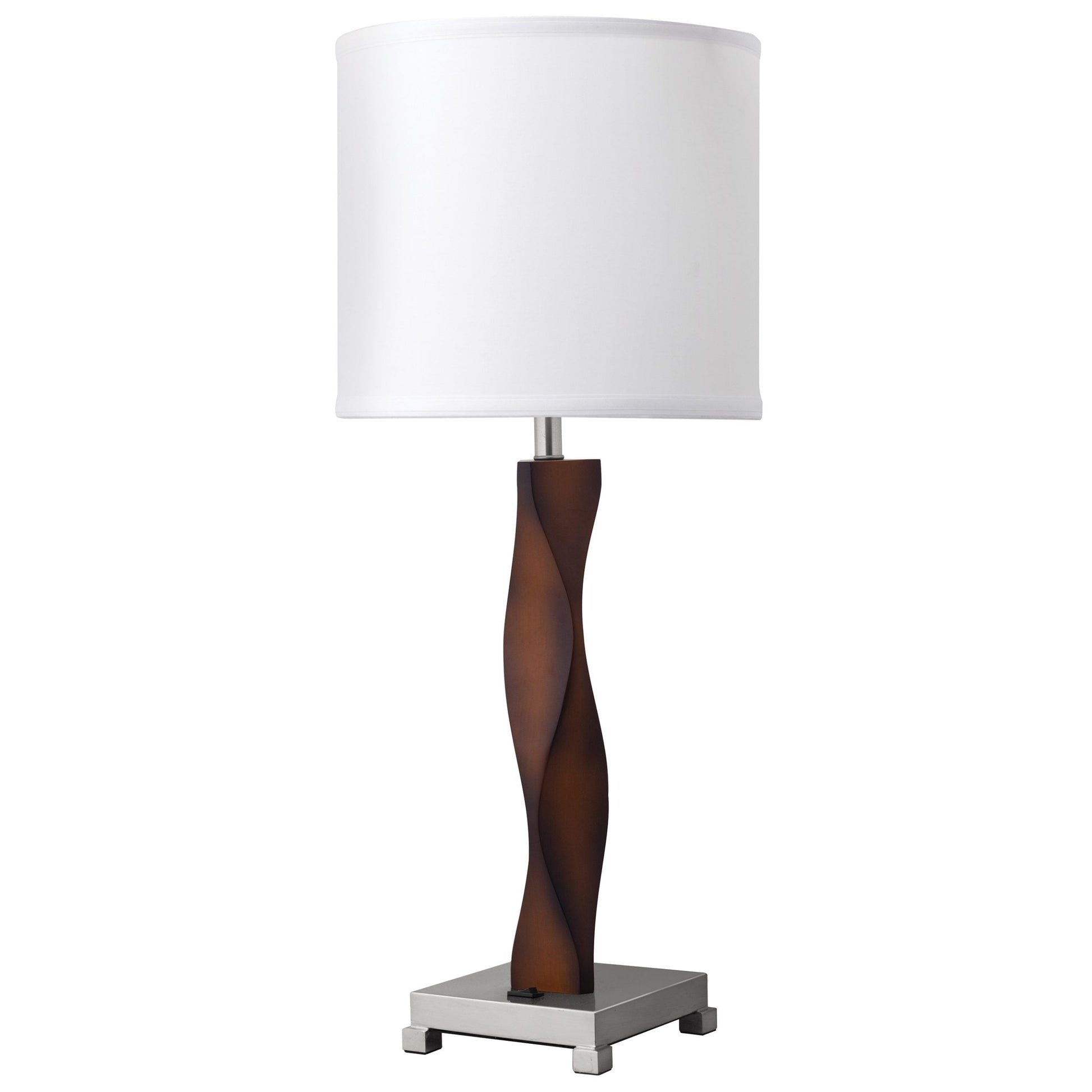 27.5″H Table lamp with cherry wood and brushed nickel finish
