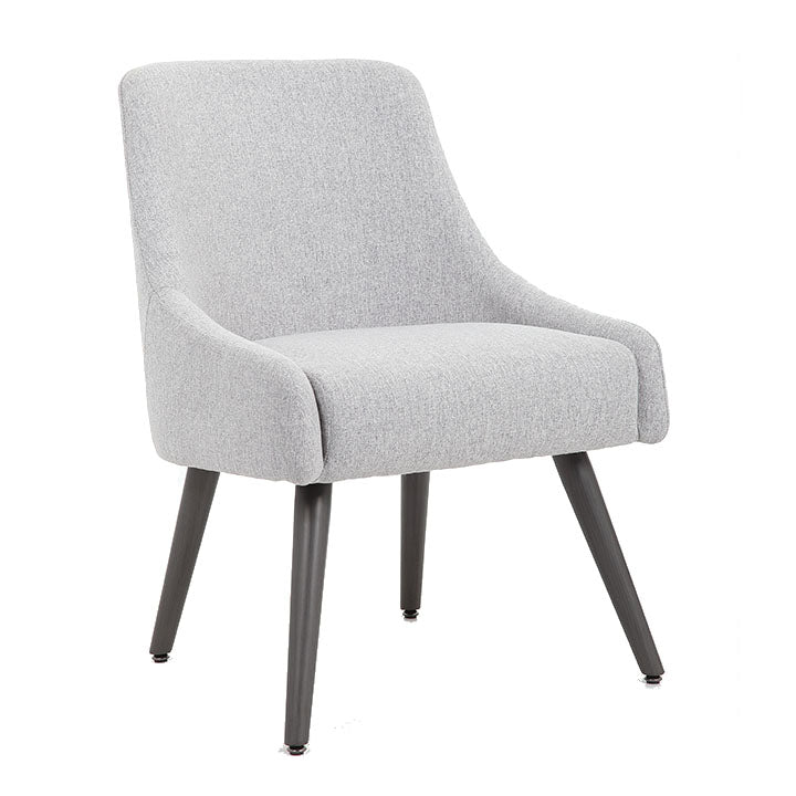 This Boyle guest chair has a unique curved back, and it has a foam padded seat. Both of which are upholstered in a soft touch poly-linen weave. It also comes equipped with 4 heritage gray wood tone metal legs.