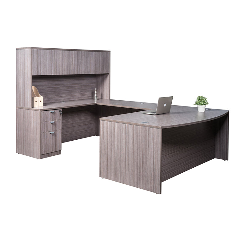 Boss 71 Inch Executive U-Shaped Curved Bow Desk with File Storage Pedestal and Hutch, Driftwood