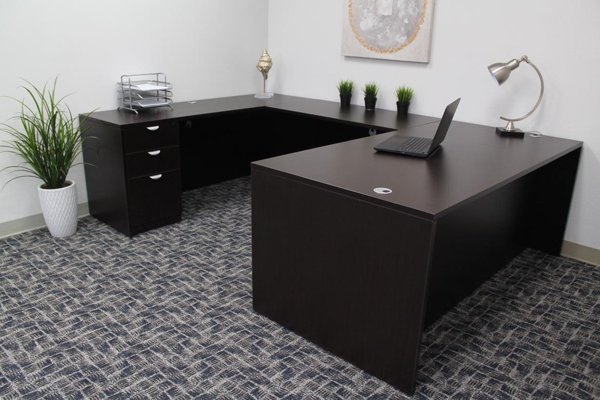 Boss 66 Inch Executive U-Shape Desk with File Storage Pedestal, Mocha