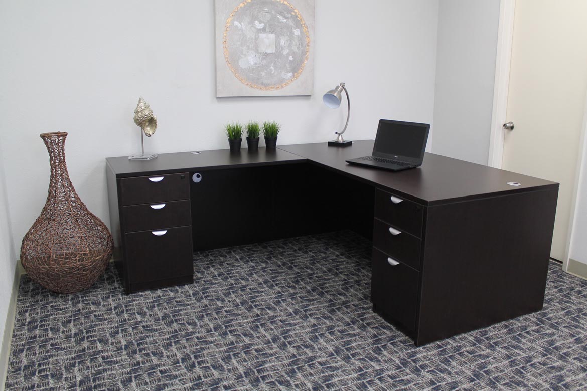 Boss 71 Inch Executive L-Shape Corner Desk with Dual File Storage Pedestals, Mocha