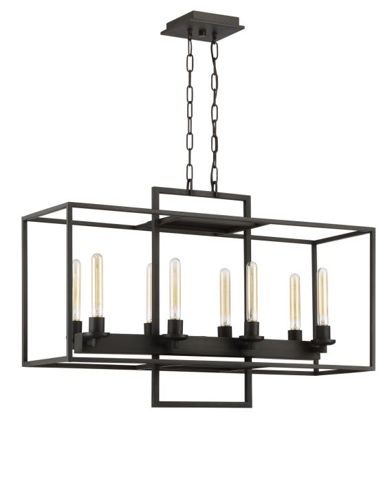 Cubic 8 Light Linear Chandelier in Aged Bronze Brushed