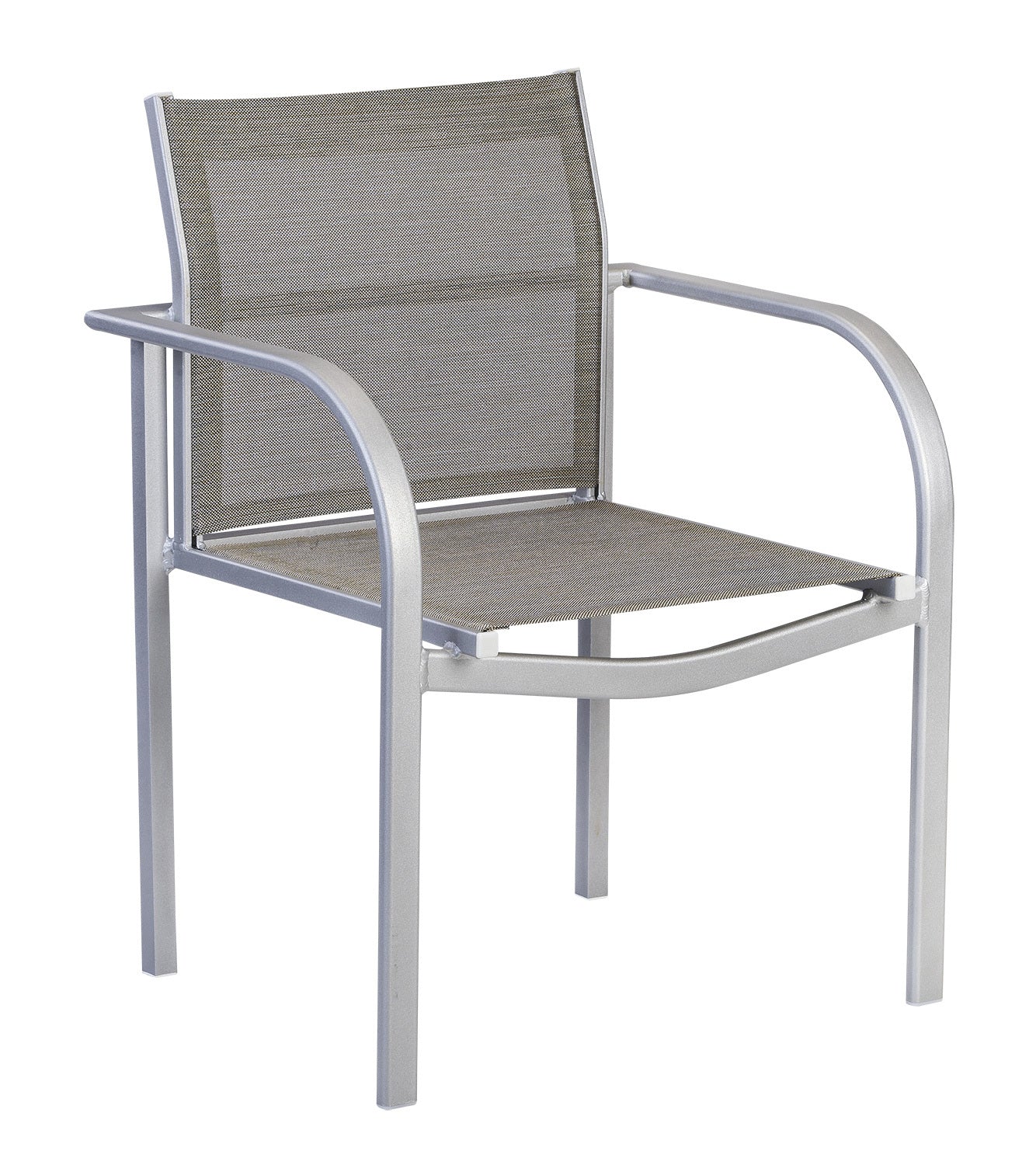 The Curv Relaxed Sling Dining Chair sets the table with endless comfort. The stackable aluminum dining chair is designer-friendly, available in a wide array of high-end fabrics, finishes as well as strap seating.