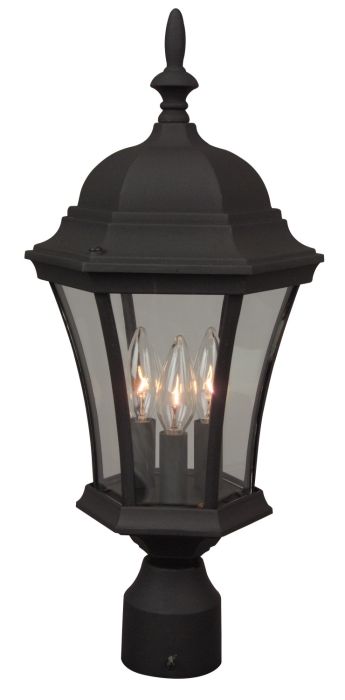 Post Mount, Wet Rated, Requires 3 Candelabra Base 60 Watt Bulbs (Not Included)