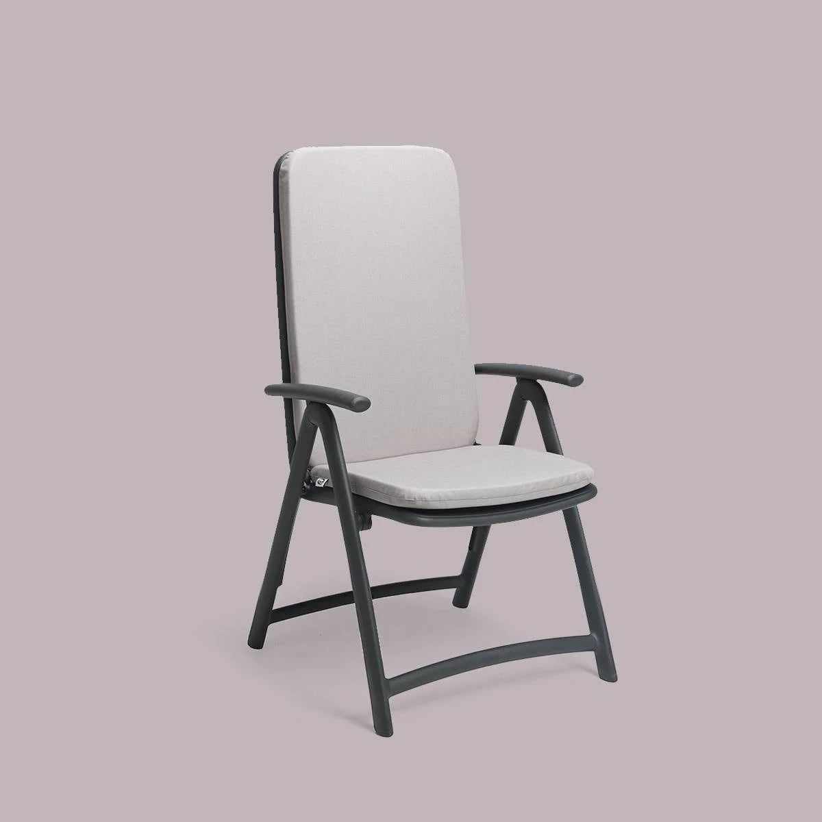 Cushion for Darsena armchair. 4 cm thick. With buttons. LINING Acrylic Fabric - 100% Olefin Fabric - Sunbrella® Acrylic Fabric PADDING Polyurethane foam. Density 28 kg/m3.