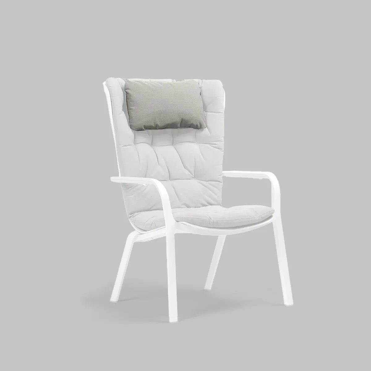 Cushion for Folio armchair. NOT removeable/zip. 7 cm thick. With fabric straps with velcro. Washable at 30°, delicate program.