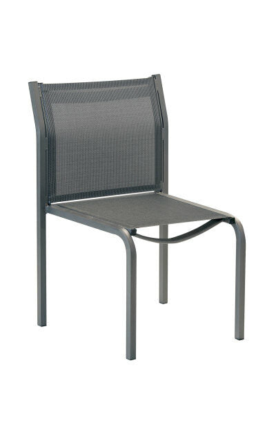 With its sleek lines and compact design, the Estancia Armless Sling Dining Chair is the ideal choice for your outdoor dining. Easily stackable, lightweight and available in a wide selection of colors and finishes, it’s modern, sturdy and functional.