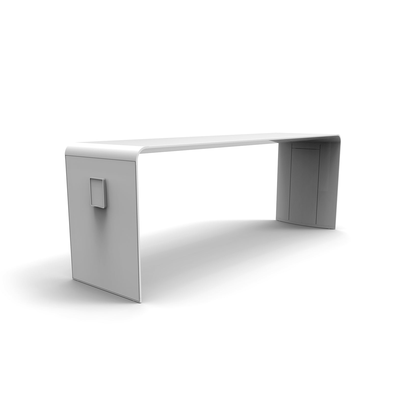The GO Outdoor Standing Height Table is a new platform for outdoor activity. A true original, GO provides a focal point and gathering place and an optional canopy with lighting. GO is made of robust aluminum extrusions and castings. Its frame is hollow like an airplane wing, channeling technology within sleek and simple forms.