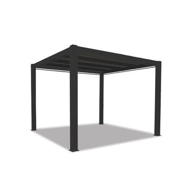 Fully welded, powder-coated aluminum pergola shade structure. Available in matte Graphite or satin Frost finish.