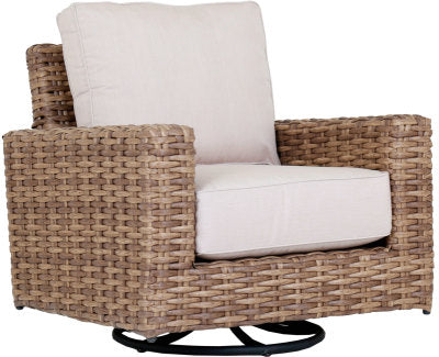 The Heirloom Swivel Club Chair from the Heirloom Collection. The generous scale highlights the sturdy, fully welded construction. The Heirloom collection brings comfort and a natural yet elegant look to any outdoor living space making it a perfect fit.