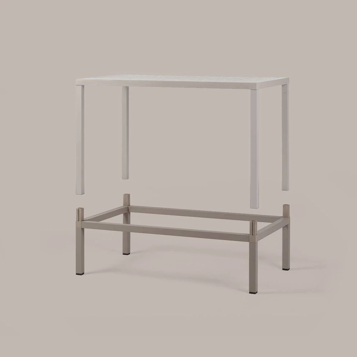 Height Lifting System (from 75,5 cm to 107 cm) for Cube 120x70 Table. Material: coated aluminium. Easy assembly and non-visible joining. Adjustable height feet.