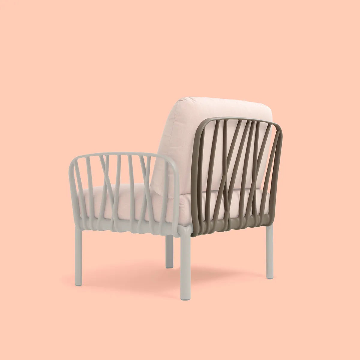 Backrest for Komodo modular system. Material: uniformly colored fiberglass polypropylene resins with UV additives. Backrest can be attached on all sides of the seat. Demountable. Matt finish. Recyclable resin.