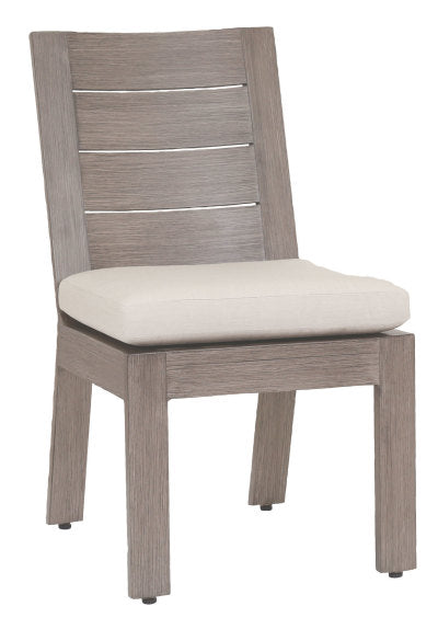 The Loft Armless Dining Chair from the Loft Collection. Transitional lines and a beautiful driftwood finish define our newest aluminum collection. The Loft collection works in many different environments. It can be found in sophisticated contemporary beach homes and on the casual decks of your favorite weekend retreat alike.