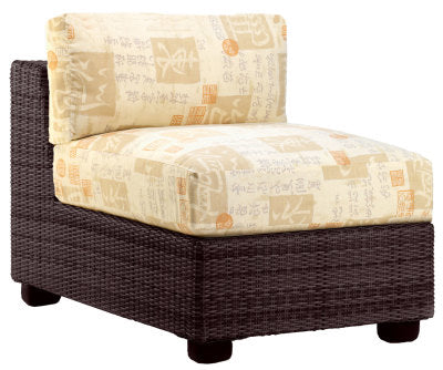 The Mariner Armless Unit is the perfect example of versatility and boundless comfort. The organic yet streamlined wicker style is available in deep seating, light or dark wicker and the outdoor modular pieces allow designers to mix and match to endless heights. Select among a unique selection of fabrics to perfect any outdoor resort or hotel space.