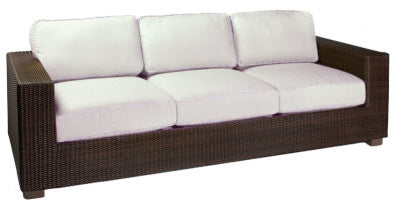 The wicker Mariner Deep Seating sofa is simple and sophisticated. Perfect for three to four new or old friends and family, the sofa is easy to mix and match with other pieces in the outdoor wicker collection. Designers select among a variety of deep seating cushion fabrics to compliment their beach resort or patio arrangement. Available in light or dark brown wicker.