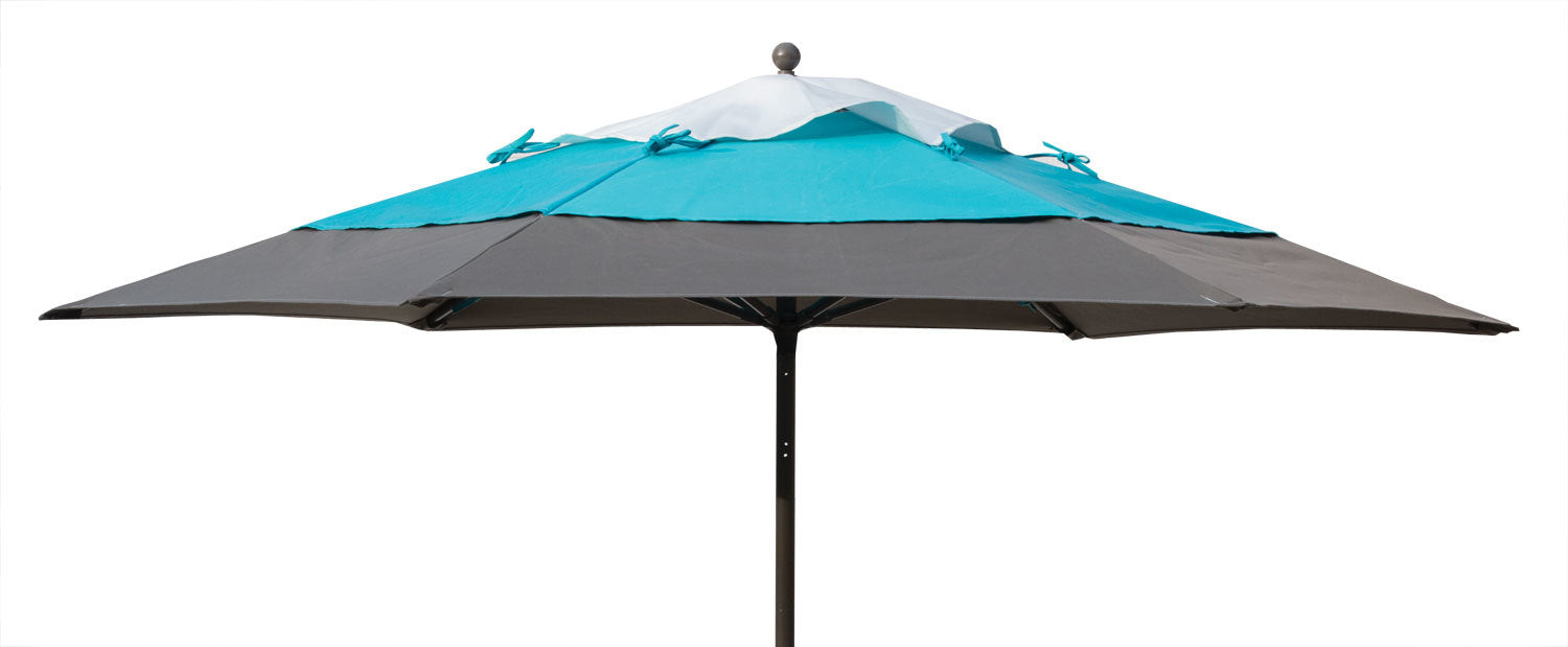 The perfect addition to any outdoor space, the nine foot with ½” rib Market Middle Vent Umbrella. Mix and match the umbrella and vent coloring to suit any design. 9 foot (with ½” or ¾” ribs) options available. Fiberglass Frame Umbrellas available with two-piece fiberglass pole, one-piece fiberglass pole or one-piece powder-coated aluminum pole.