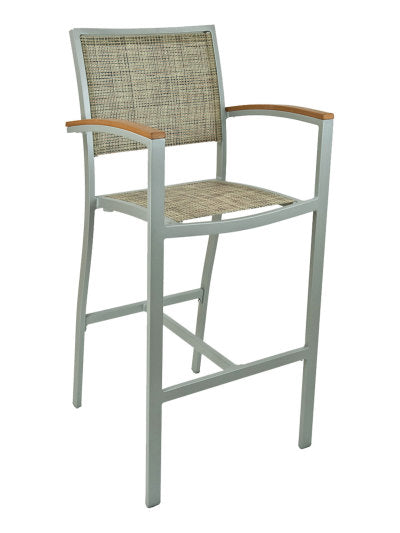 The Mirabella Arm Barstool FSBAL5624A from the Mirabella Collection. The natural grain wood in our Shorea Wood collection provides instant calm with its minimalist lines. The Mirabella line adds a modern edge to traditional design. Undeniably inspiring and of the finest quality, Mirabella is available in complete seating, lounge and table options to suit the needs of your space.