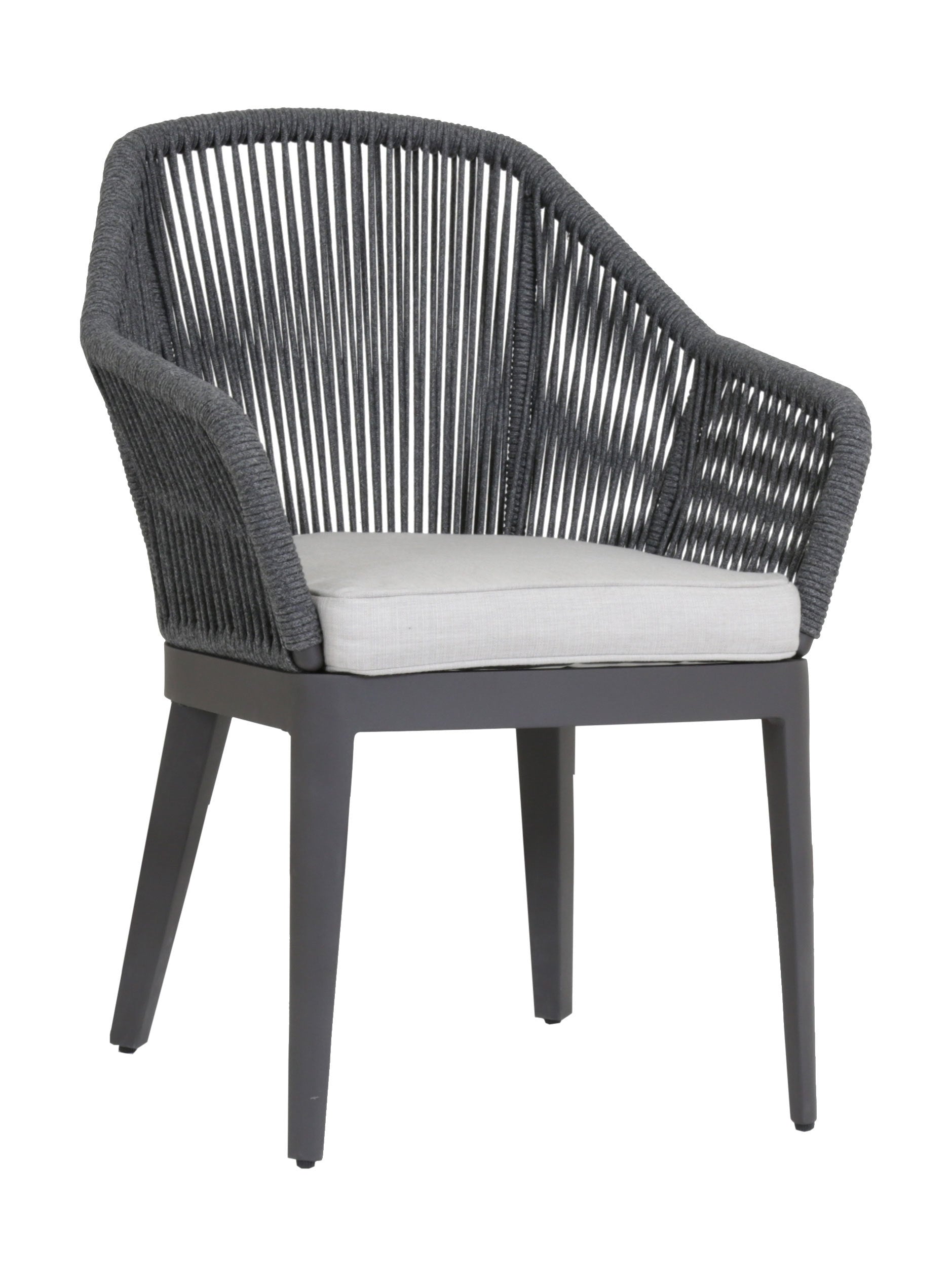 Crafted in the highest quality comfort and durability, the Monroe Dining chair will stand the test of time with minimal maintenance. Its powder coated aluminum frame is expertly wrapped with premium all-weather Charcoal acrylic rope.