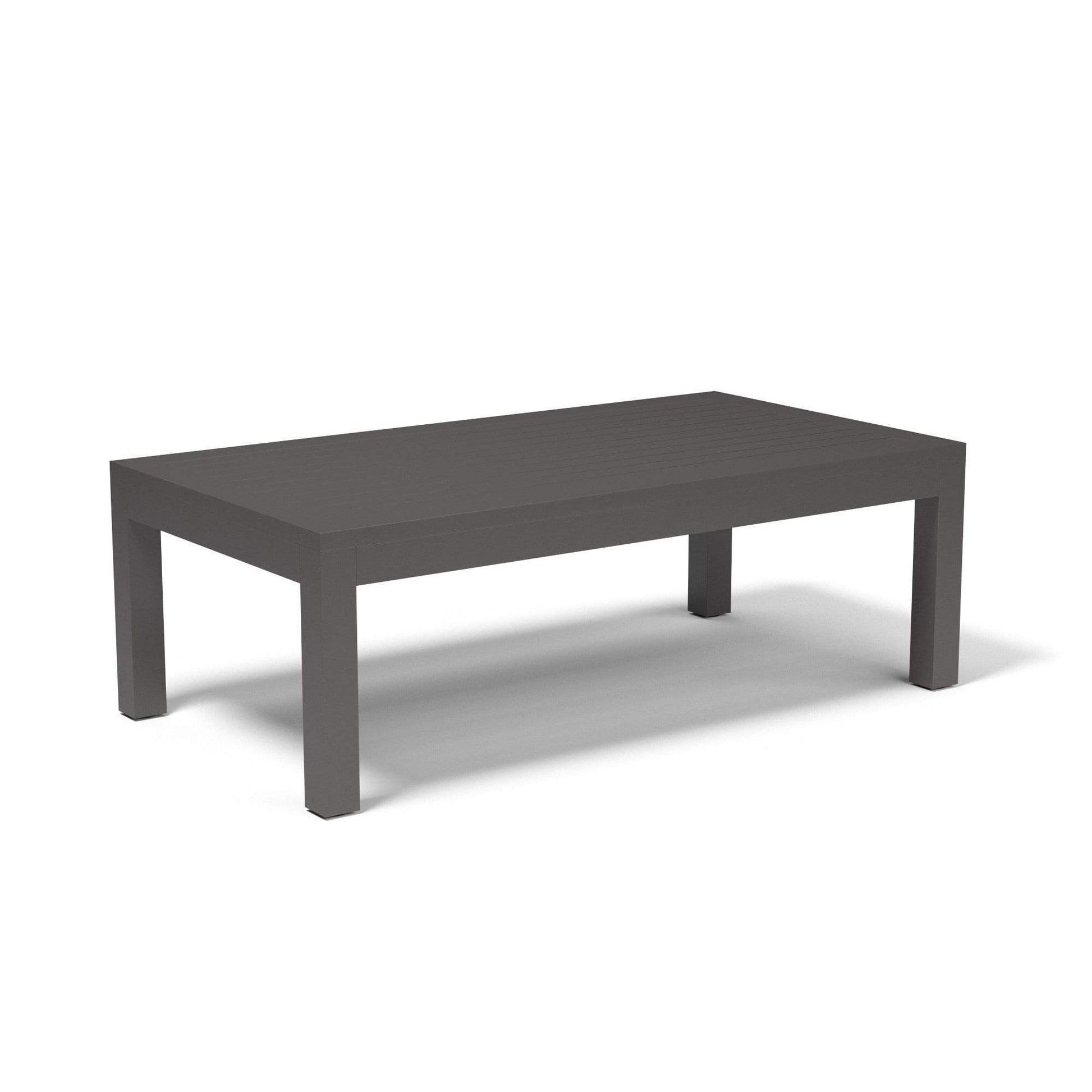 The Vegas Coffee Table is crafted in a scratch resistant Graphite finish, on a powder-coated aluminum frame and features a slate table top.