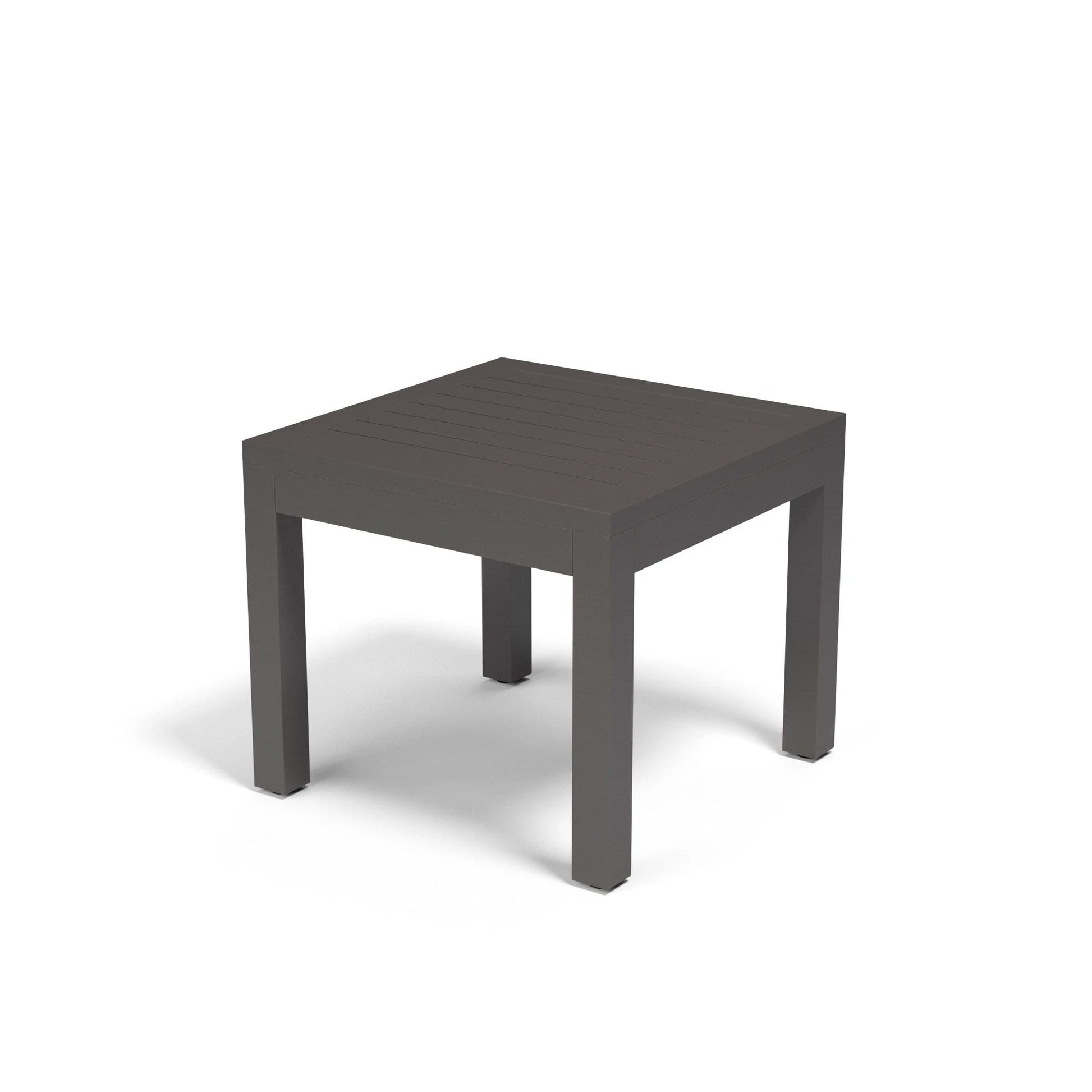 The Vegas End Table is crafted in a scratch resistant Graphite finish, on a powder-coated aluminum frame and features a slate table top.