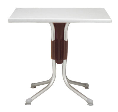 The contemporary and clean characteristics of the 31.5″ Polo Folding Table is a compliment to our Resin outdoor furnishings collection. Beautiful and durable, pair the outdoor table, which features a silver top, café accent and silver legs, with any of our aluminum table bases to suit your varying design needs. Maintenance free and weatherproof, it is the preferred line of the finest resorts and hotels.