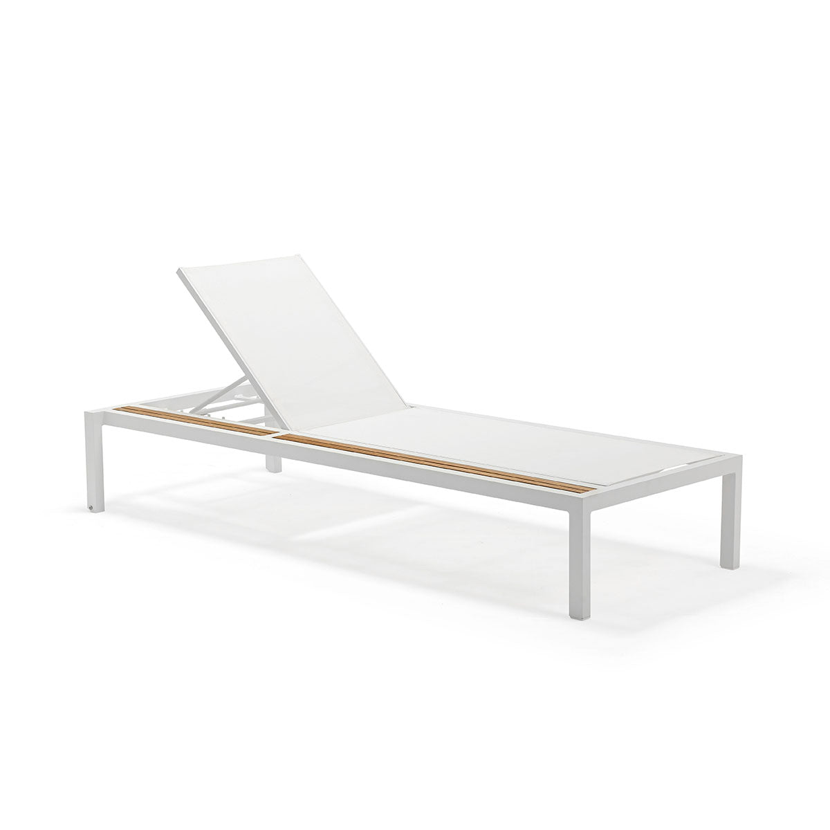 material Frame – Aluminum; Faux Teak / Fabric – Batyline Serge Ferrari Mesh Stacking? No