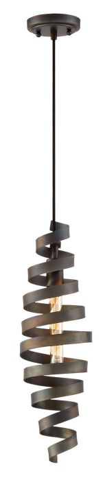 The Craftmade adjustable height 1-light pendant features a matte black spiral metal shade and canopy with 10' adjustable black cord.