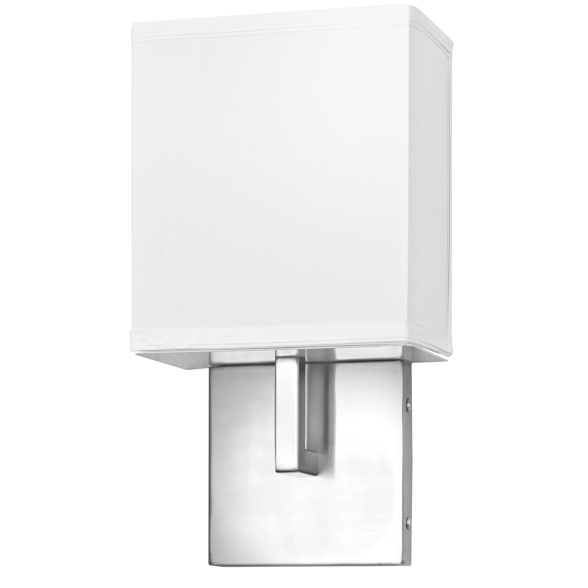 13″H Wall sconce with brushed nickel finish and linen half shade
