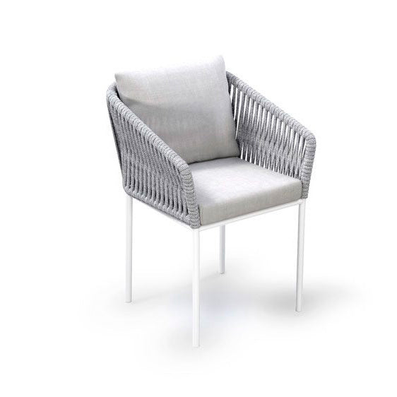The Stone Gate Dining Chair from the Stone Gate Collection. The Stone Gate collection brings something organic to the outdoor furniture space with its wound rope designs. Intertwining playful patterns with a durable aluminum frame, this distinct collection brings a stunning sophistication to any outdoor space. Whichever piece you choose is sure to be both a cozy comfort and a conversation starter.