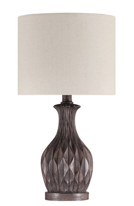 Carved painted brown base with included linen drum shade details of this 17.72" H x 10" W portable accent lamp make this as easy choice for any transitional to traditional space. Bulb: 1 x 60W Max, Medium Base(Not Included)
