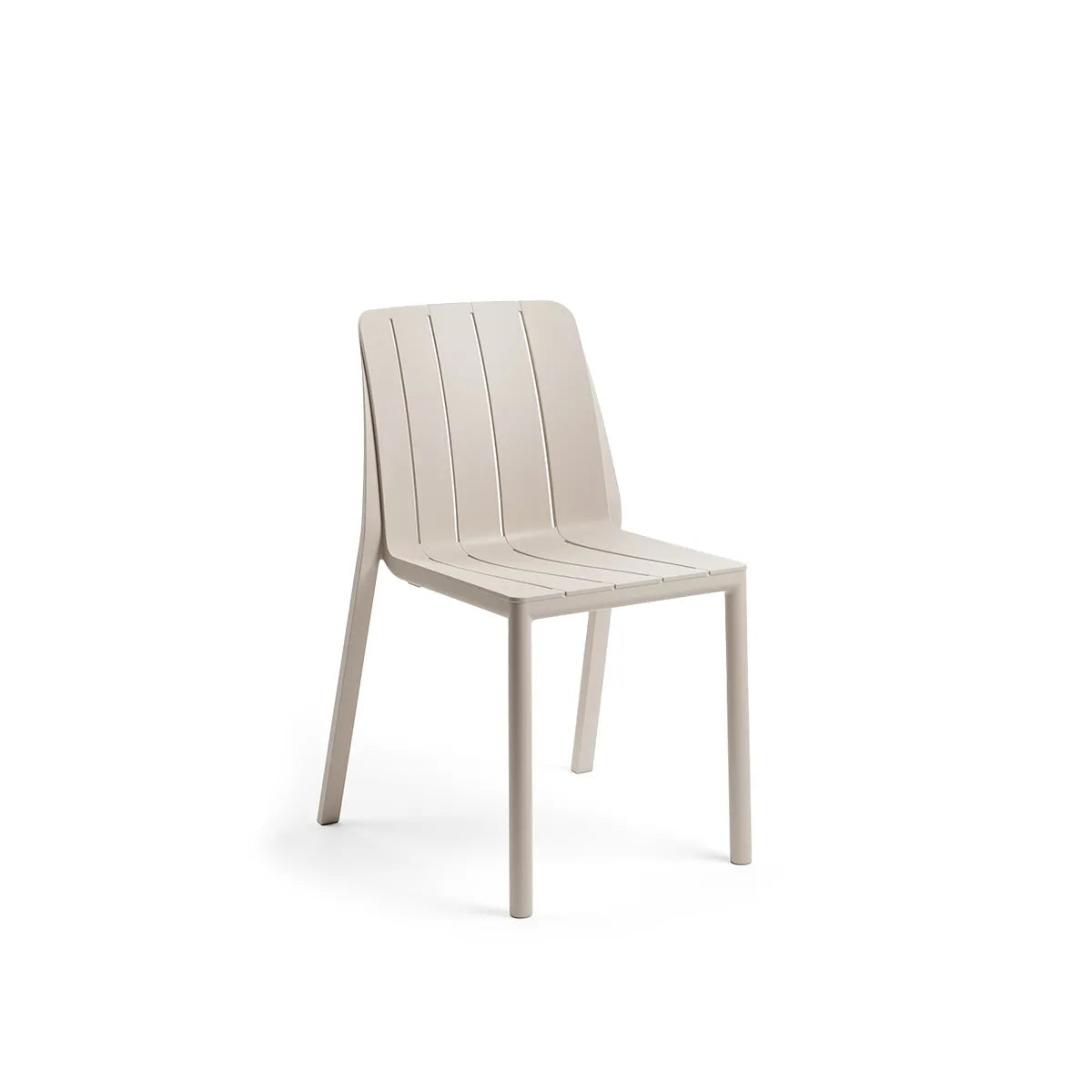 eco-friendly Tiberina slatted chair, without armrests, features rounded lines