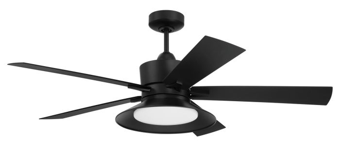 The Craftmade Topper 52" ceiling fan features a protected integrated dimmable 20W 3000K - 5000K adjustable LED light with optional lens cover, 5 custom polycarbonate blades, a quiet energy-saving 6-speed, reversible DC motor, and is easily controlled with either the included remote control or the integrated WIFI featuring breeze and timer functions compatible for use with most smart home devices, smart phones and systems with no additional hub needed. Available in two finishes, the Brushed Polished Nickel is indoor rated only. The Flat Black is indoor/outdoor wet rated.