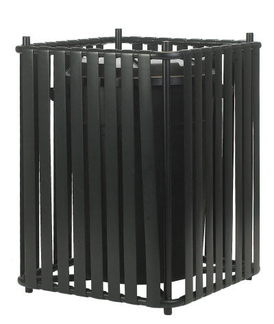 The Vinyl Strap Trash Sleeve provides an attractive disguise to any commercial-size trash receptacle.