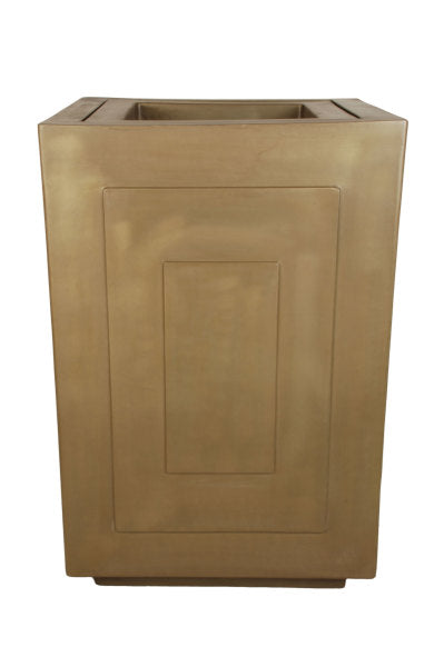 The Tron Planter – Receptacle measures 24″SQx20″Bx34″H, it has a 2″H toe kick and has ash-trash top. The ash section can be filled with sand and is approximately 6″ deep, there is also a trash/recycle option and comes standard with a durable fiberglass liner (25 gallon capacity) or liners (12 gallons each) with a rolled lip and hand slots.