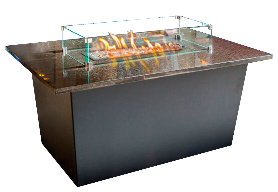 Everyone loves sitting around a warm fire on a cool evening. Harness its beauty and warmth with our sophisticated and impressive Tuscany Fire Table, finished in faux stone with an available glass fireguard for added safety and elegance, and a solid base to prevent tipping.