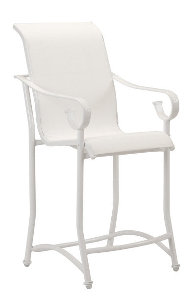 The sophistication and sling seating of the Valhalla Sling Barstool add polish to any premiere resort space. Designers appreciate the sling and frame color selections which makes finishing off their thoughtful outdoor seating arrangement seem effortless.