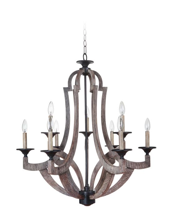 Winton 9 Light Chandelier in Weathered Pine/Bronze